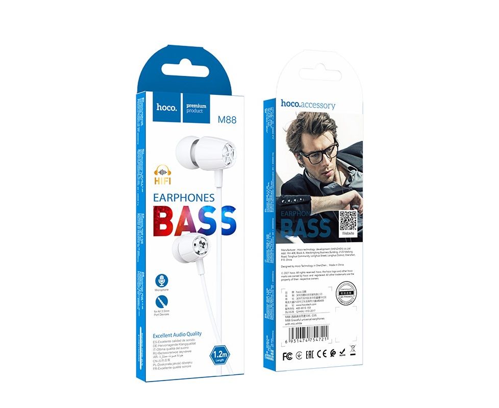 Наушники HOCO M88 Graceful universal earphones with mic (белый)