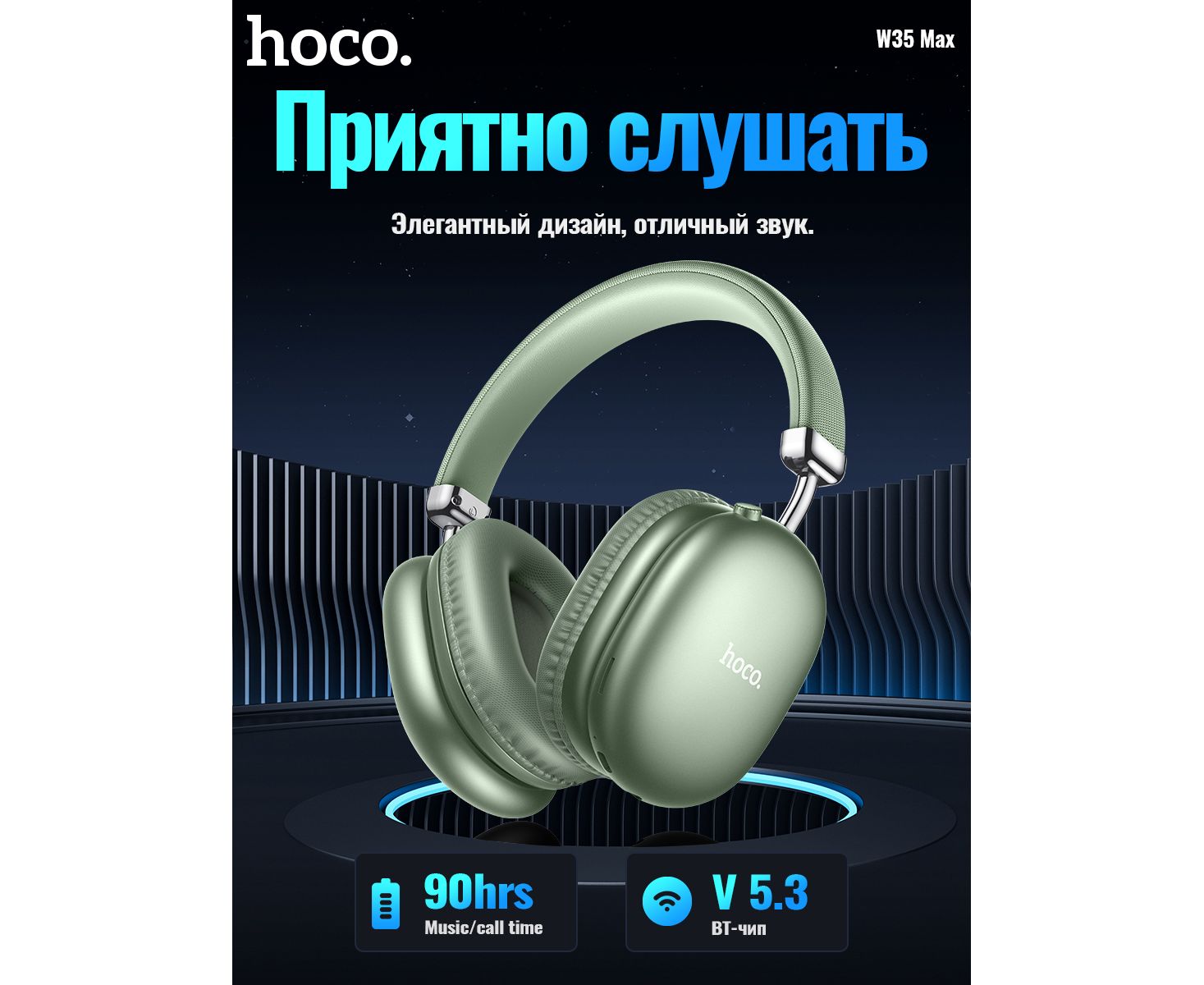 Наушники полноразмерные bluetooth HOCO W35 Max Joy BT (зеленый)