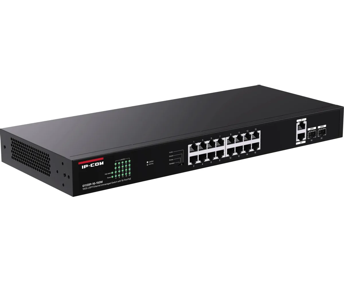 Неуправляемый PoE коммутатор IP-COM G1120P-16-250W с 16 Гигабитными портами PoE и 2 SFP портами