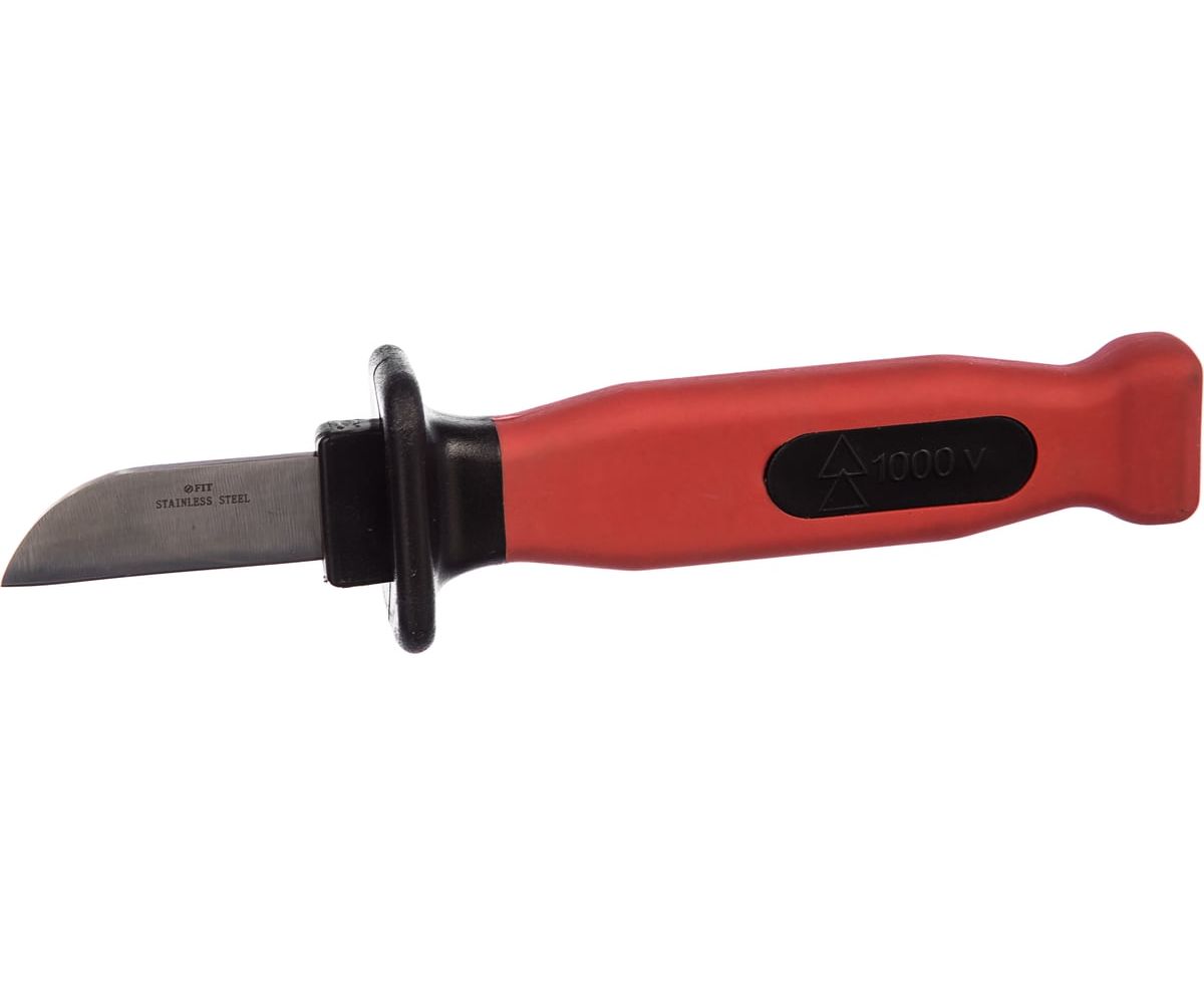 Изолированный нож FIT 1000 В, нерж.сталь, лезвие 50мм, прорезин.ручка 10605 служит для зачистки изоляционной оболочки проводов и кабелей. Изделие защищает пользователя от поражения электрическим током при выполнении работ на установках под напряжением до 1000В переменного тока и до 1500В - постоянного тока. Лезвие ножа изготовлено из нержавеющей стали, рукоятка выполнена из пластика и имеет обрезиненную поверхностность. Пластиковые ножны защищают лезвие при хранении и транспортировке.