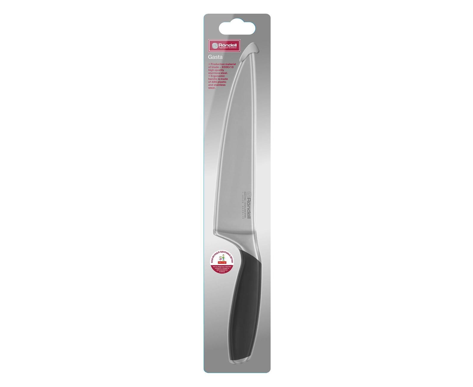 Нож кухонный Rondell Gasta RD-1864 стальной поварской для измельчения лезв.200мм прямая заточка черный блистер