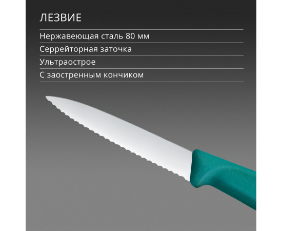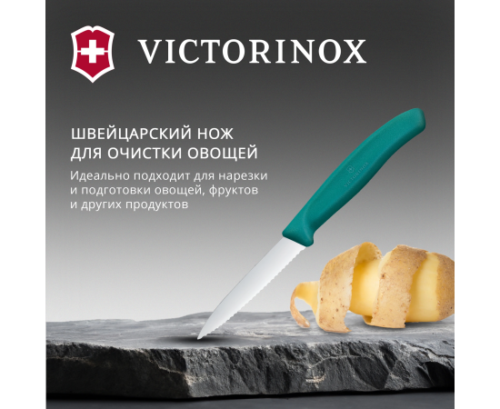 Нож кухонный Victorinox Swiss Classic 6.7634.C1 для чистки овощей и фруктов лезв.80мм серрейт. заточка зеленый