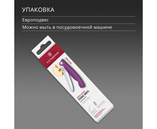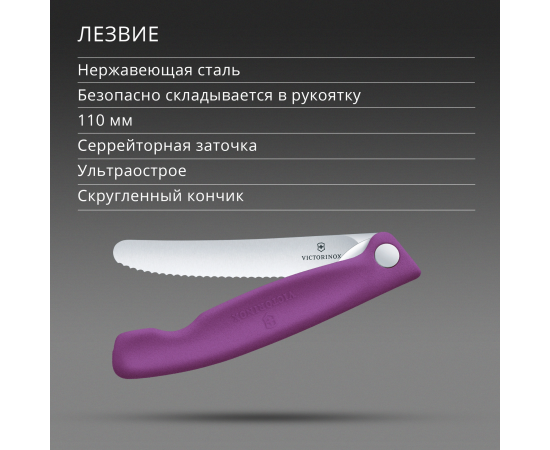 Нож кухонный Victorinox Swiss Classic 6.7835.FC1 стальной столовый лезв.110мм серрейт. заточка пурпурный карт.коробка
