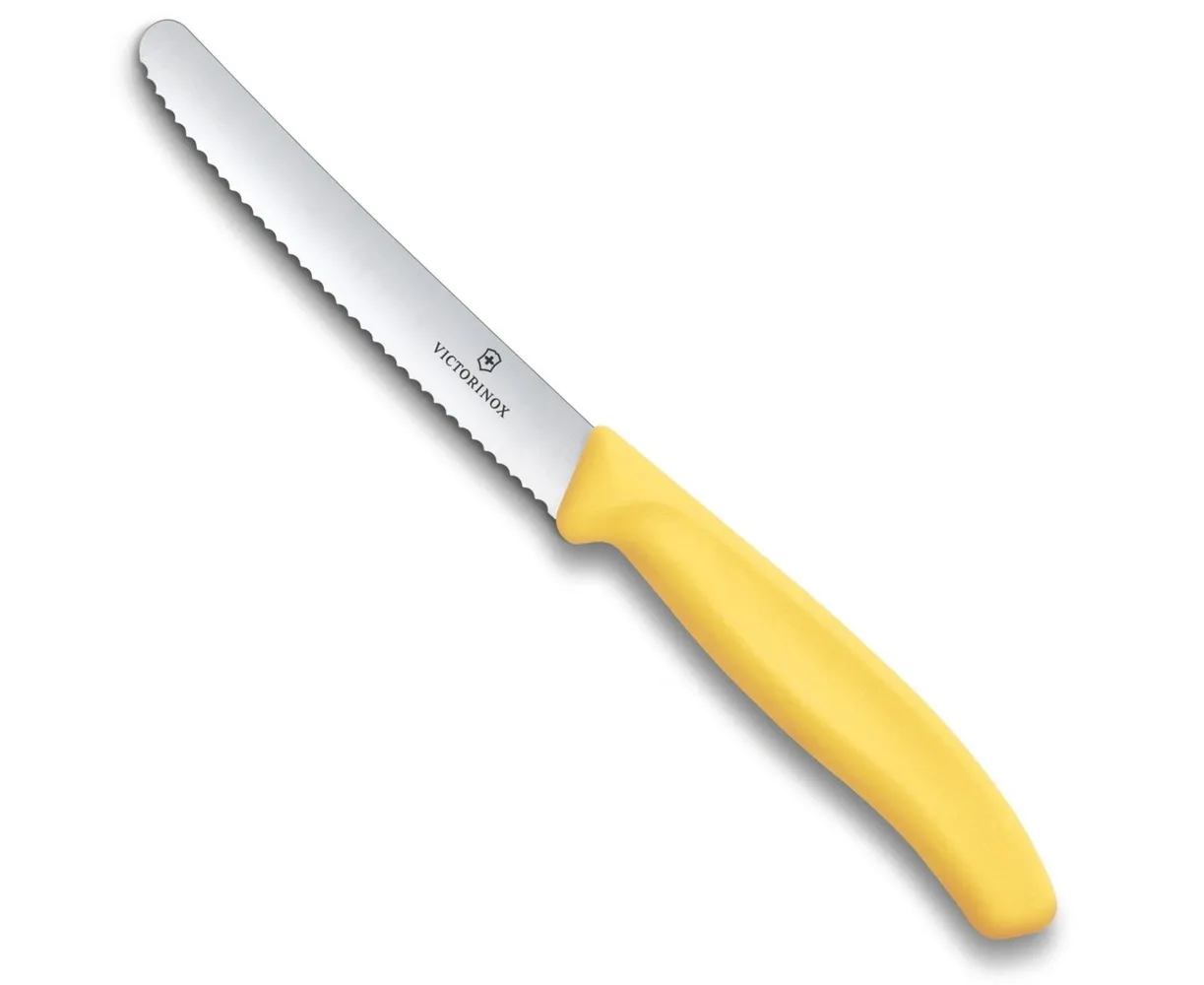 Нож кухонный Victorinox Swiss Classic 6.7838.C1) стальной столовый для овощей лезв.110мм серрейт. заточка желтый