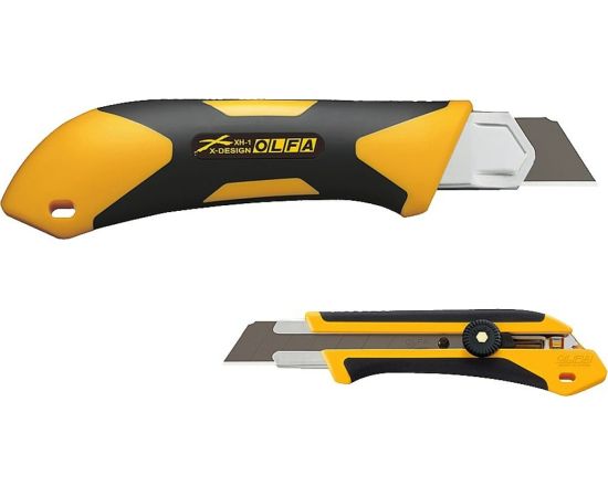 Сверхпрочный нож OLFA OL-XH-1 предназначен для разрезания жестких материалов, например, резины или фанеры. Инструмент снабжен усиленными стальными направляющими и мощным острым лезвием шириной 25 миллиметров, благодаря чему, его можно использовать в профессиональных работах.