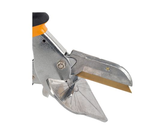 Ножницы для резки коробов и кабель-каналов RAGE by VIRA совместимы с трапециевидными лезвиями длиной до 62 мм. Маркировка угольника гарантирует точную стыковку в рабочей зоне. Лезвие из нержавеющей стали закалено, что обеспечивает более высокую ударную вязкость и износостойкость.