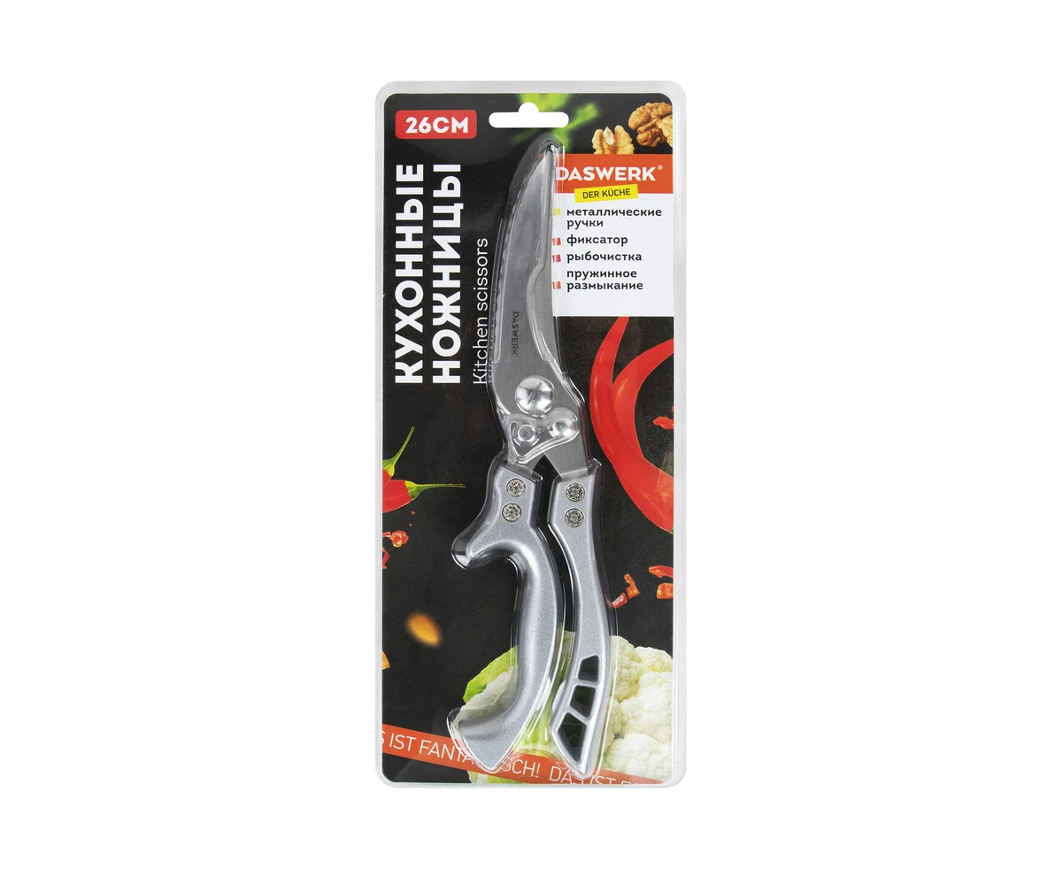 Ножницы-секатор кухонные DASWERK 608902 260мм, фиксатор, зазубренные, металлические