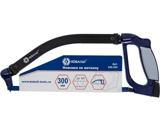 Ножовка по металлу КОБАЛЬТ 300 мм алюминиевая рукоятка, поворотная металлическая рамка (246-524)