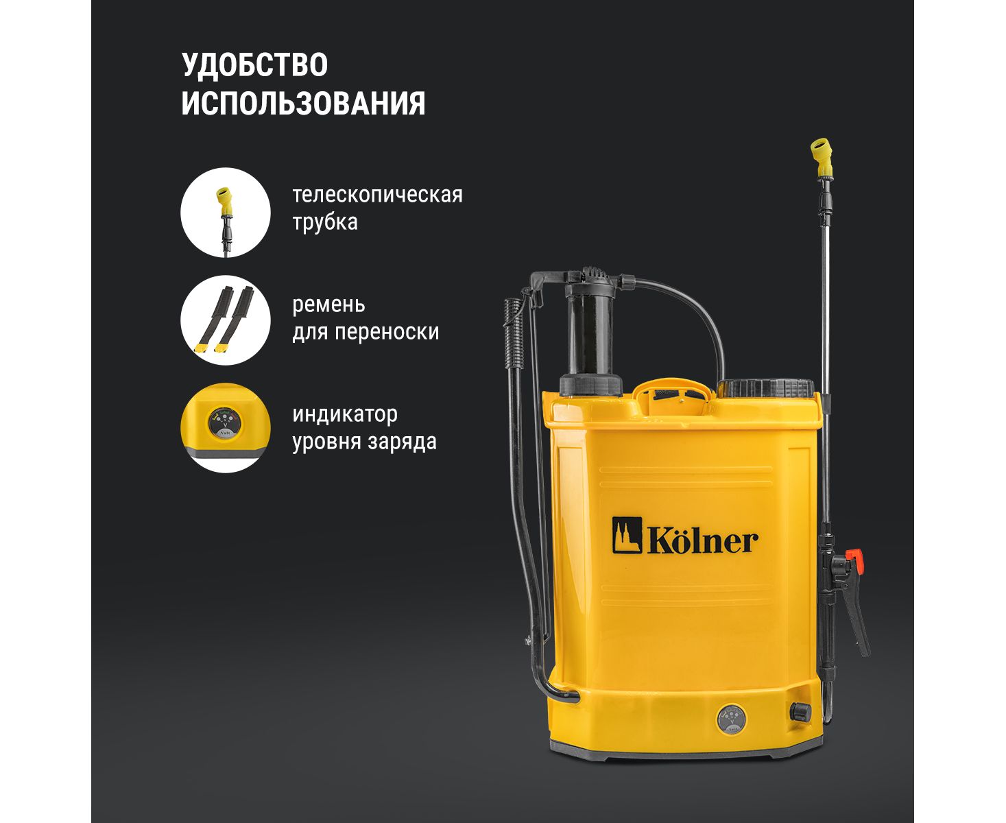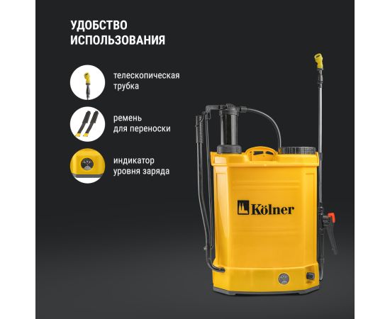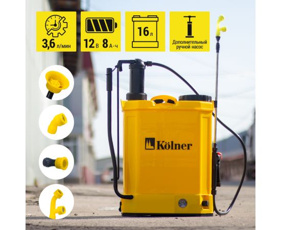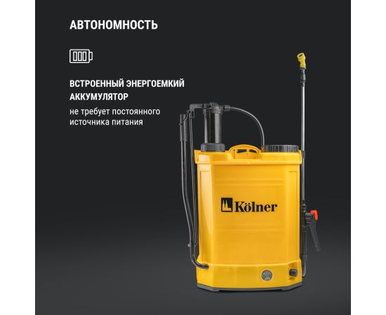 Опрыскиватель аккумуляторный Kolner KCSG 16/12ВРH-SLA, встроенный аккумулятор