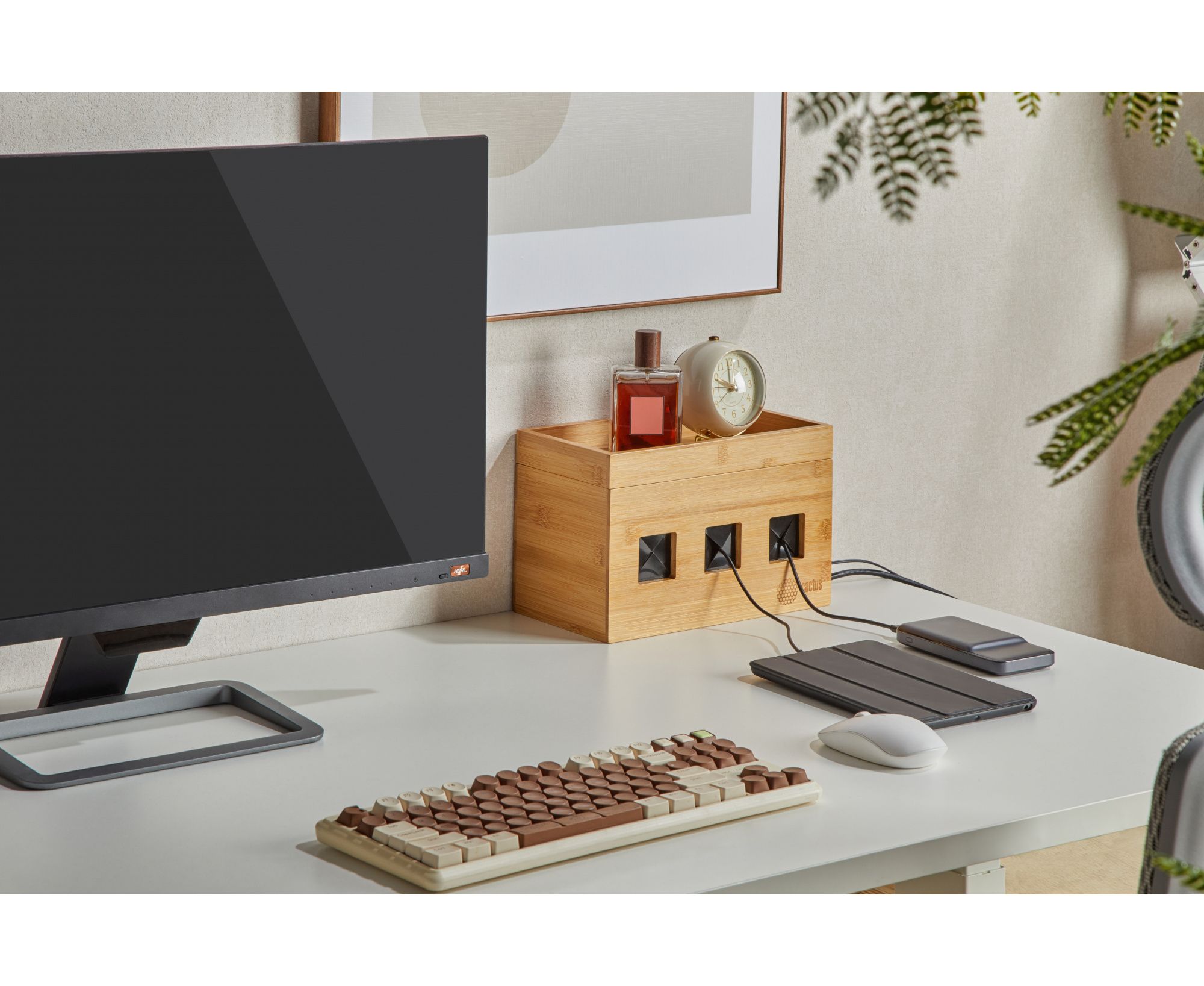 Органайзер CS-BOX-BAM сделан из экологически чистых материалов. Удобная конструкция легко спрячет провода внутри, а верхнюю крышку с бортиками можно использовать для хранения различных мелочей Классическая форма, возможность скрыть лишние детали позволит вписаться в интерьер дома, офиса или дачи без потери функциональности.