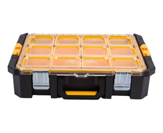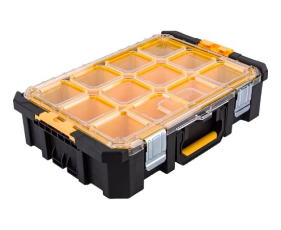 Органайзер с возможностью объединения в систему MODULAR SYSTEM Inforce 06-20-18 используется для удобного хранения и перевозки мелочей и метизов. 12 небольших отделений позволяют сортировать мелкие детали. Металлические защелки защищают от рассыпания содержимого. Ручка обеспечивает удобство переноски органайзера. Предусмотрена степень защиты от влаги и пыли IP65. Органайзер подходит для объединения с любыми продуктами Inforce MODULAR SYSTEM.