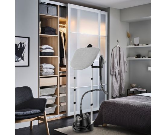 Отпариватель оснащён гладильной доской, которая может быть расположена горизонтально, вертикально и под наклоном. Она значительно облегчает и ускоряет процесс отпаривания. Также на ней располагается крючок, на который можно вешать вешалку с одеждой.