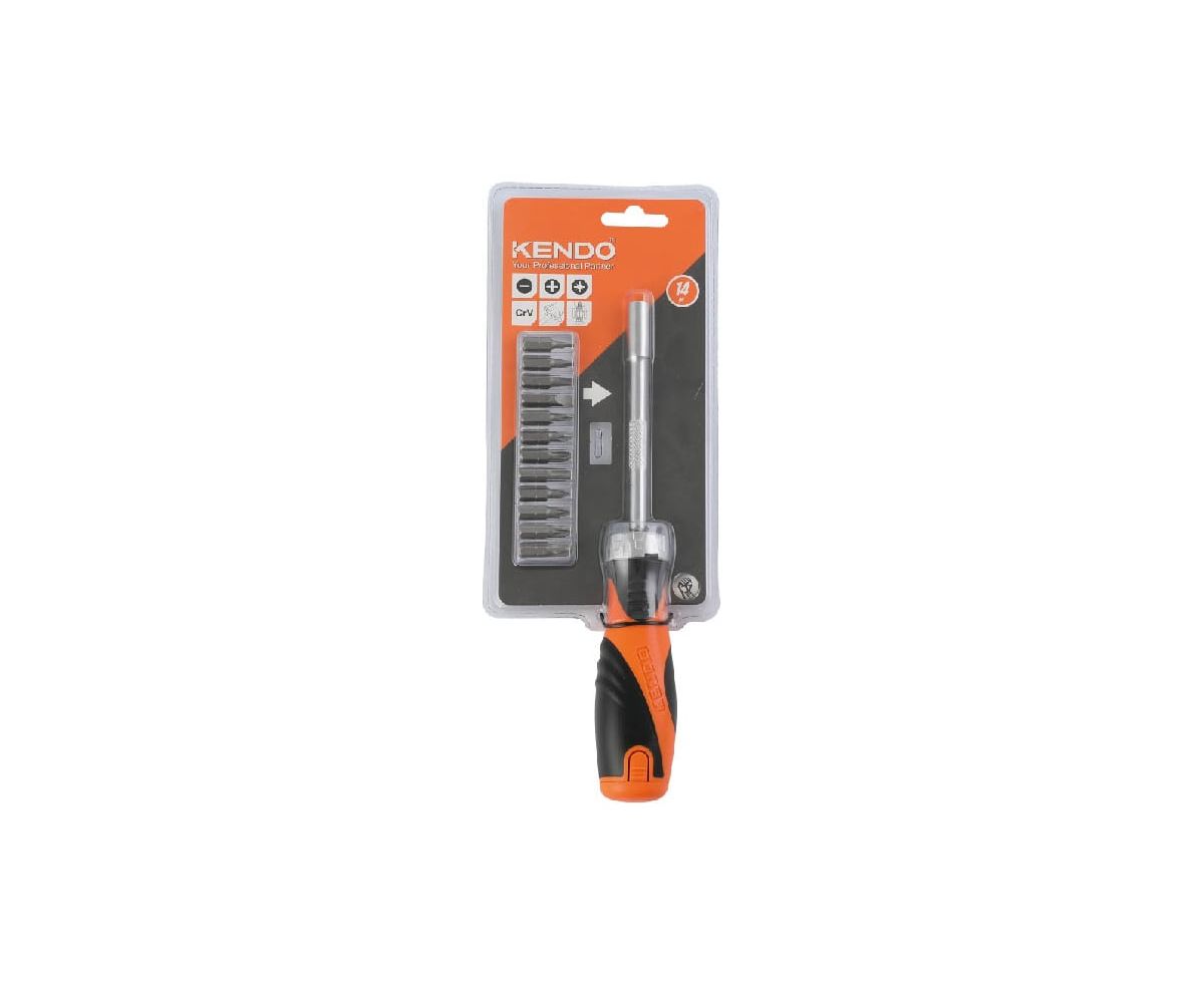 Отвертка с трещоткой KENDO 20016 с набором бит 14 предметов