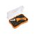 Реверсивная отвертка с набором бит поставляется в пластиковом кейсе. Инструмент обладает храповой конструкцией и эргономичной ручкой с удобным захватом, что способствует комфортной работе при монтаже и демонтаже резьбовых соединений.