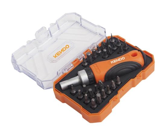 Отвертка с трещоткой KENDO 20665 с набором бит (27 предметов)