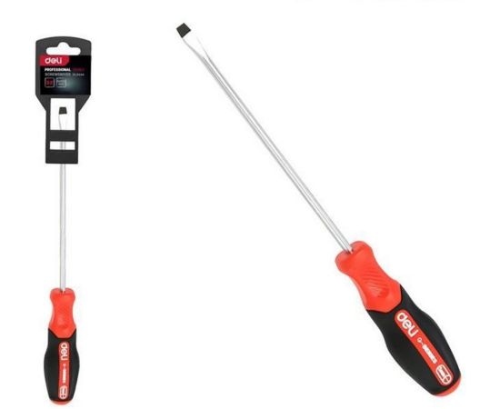 Отвертка шлицевая DELI DL3444 SL5x100мм сталь S2, матовый стержень, двухкомпонентная прорезиненная рукоять