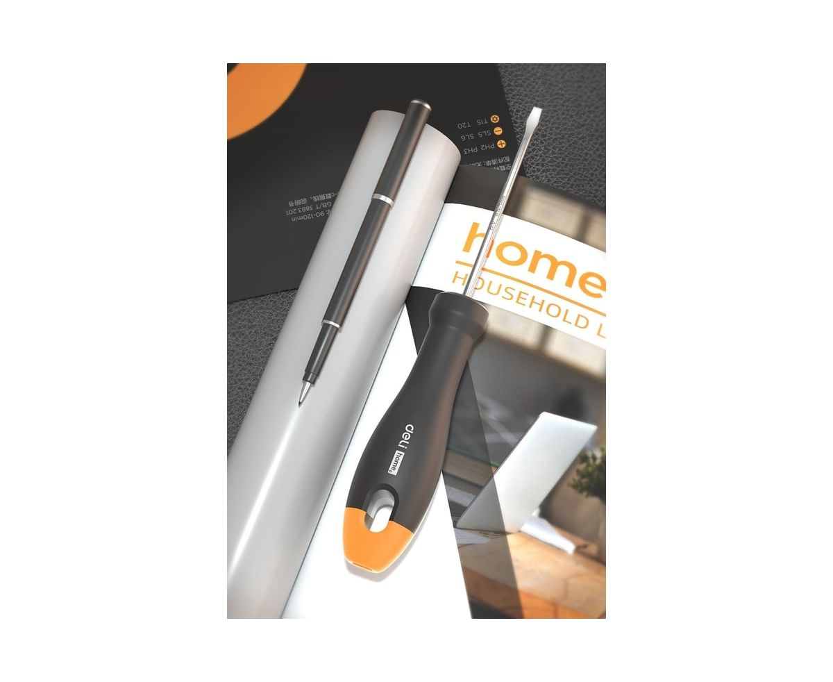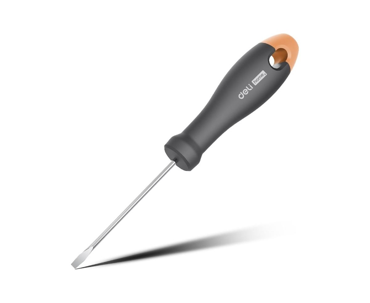 Шлицевая отвёрткаDeliHomeSeriesGrayHT1103C используется для работ с резьбовыми соединениями в процессе ремонта или монтажа.