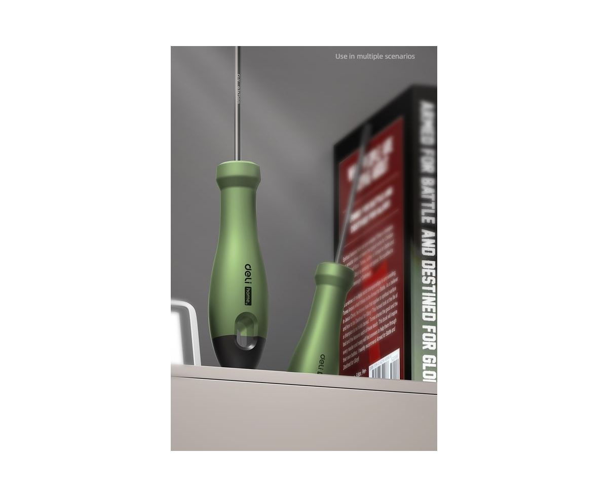 Отвертка шлицевая Deli Home Series Green HT1103L 3x75мм Эксклюзивный дизайн, рукоятка из высококачественного софттач пластика