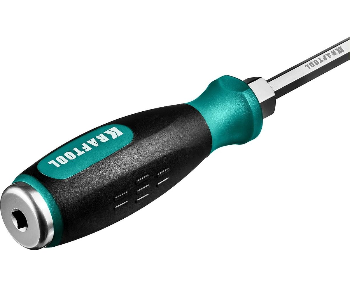 Ударная отвертка Kraftool "Impact", сквозной стержень из Cr-Mo-V стали 250033-5 позволяет работать даже со сложными крепежом.