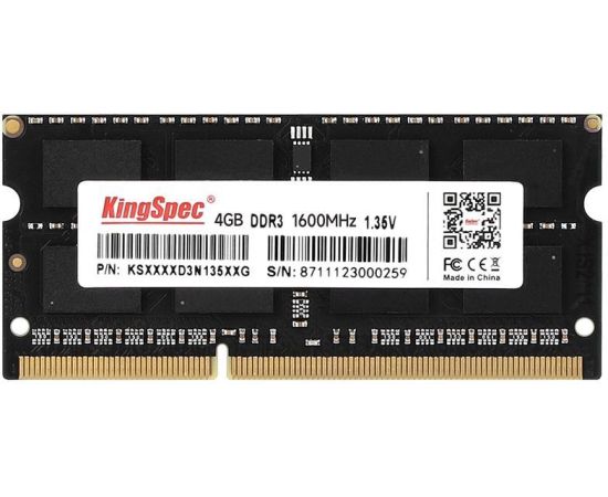 ОЗУ Kingspec KS1600D3N13504G DDR3 4Gb 1600MHz RTL PC3-12800 CL11 SO-DIMM 204-pin 1.35В