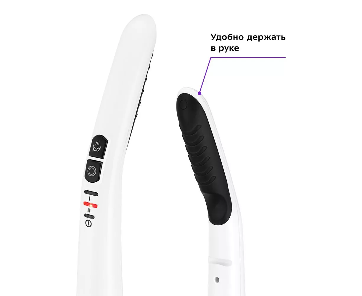 2 уровня подачи пара позволяет настраивать интенсивность работы швабры. Кнопка подачи пара удобно расположена на ручке. Индикация подсвечивает выбранный режим.