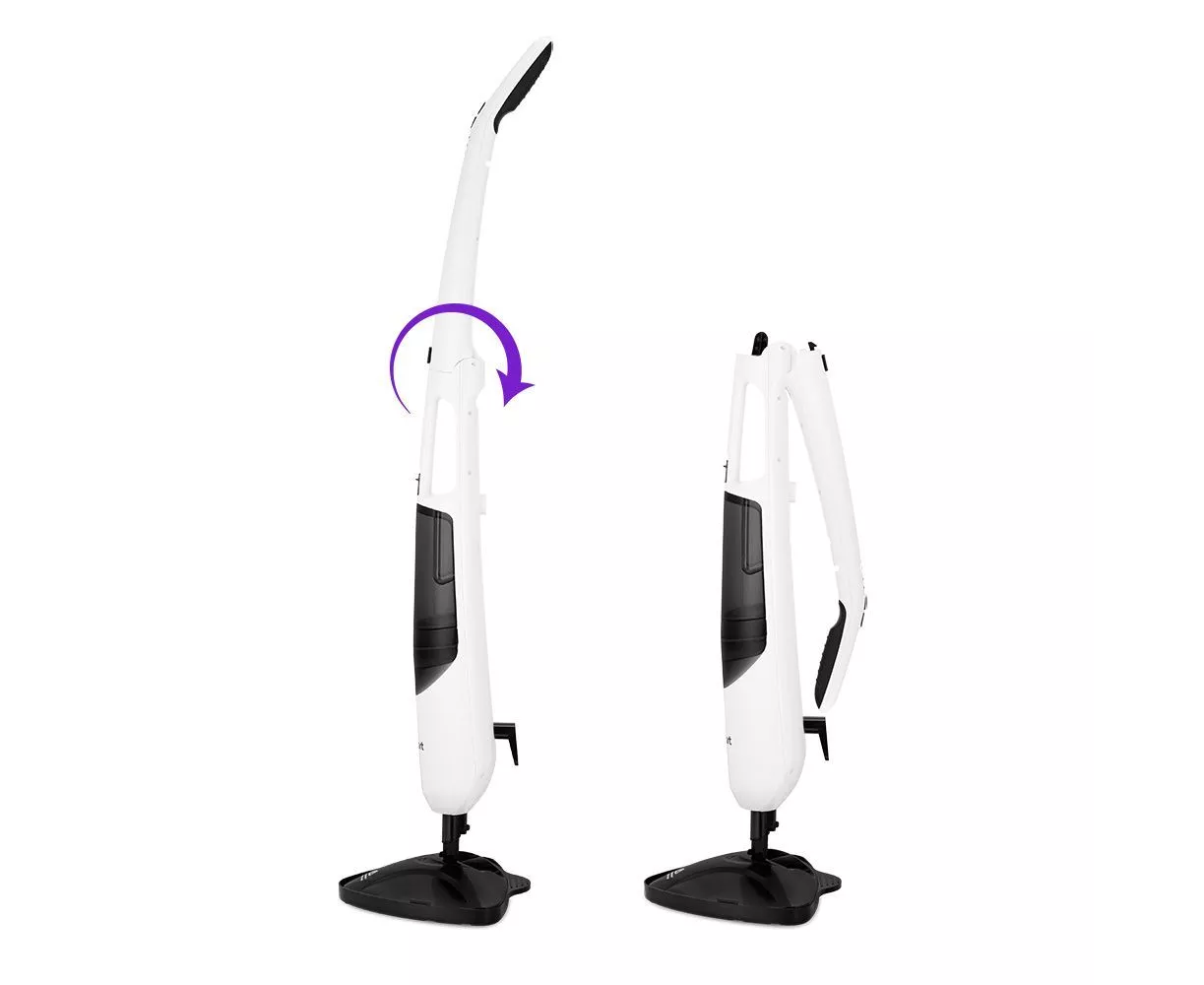 Паровая швабра имеет функцию вертикальной парковки и складную ручку для компактного хранения прибора.