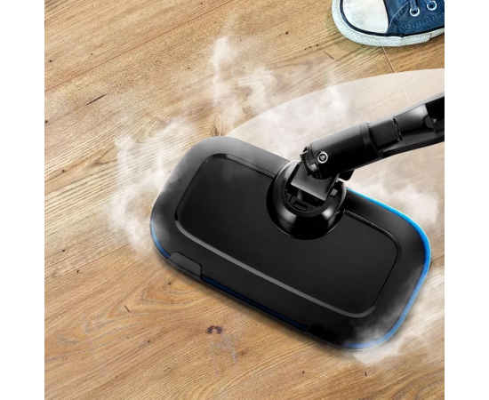 На удлинительной ручке предусмотрены держатели для шнура. Принцип работы паровой швабры прост. Вода из резервуара подается помпой (водяной насос) в заранее прогретый до высокой t бойлер. В бойлере вода моментально преобразуется в пар и выходит из сопла.