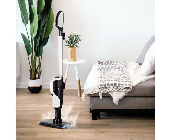 Паровая швабра «2 в 1» КТ-1066 поможет избавиться от пыли и грязи с помощью мощной струи пара, а также продезинфицирует обрабатываемую поверхность. Пар проникает внутрь загрязнения, размягчая и растворяя его, с помощью тряпки частички грязи смываются.