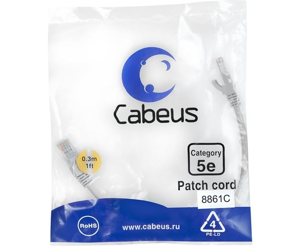 Патч-корд Cabeus PC-FTP-RJ45-Cat.5e-0.3m-LSZH экранированный, серый