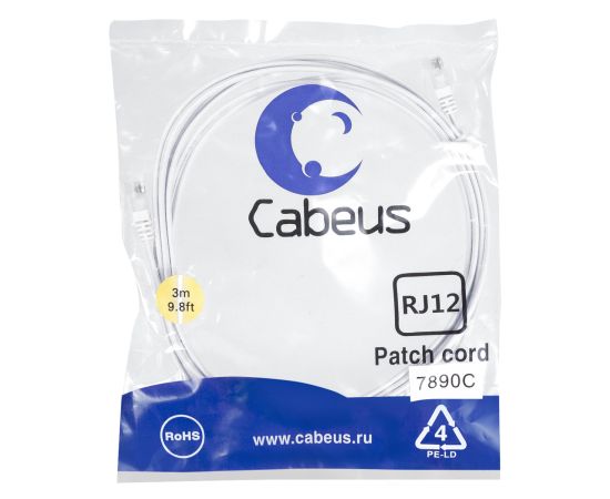 Патч-корд Cabeus PC-TEL-RJ12-3m 6p4c телефонный белый