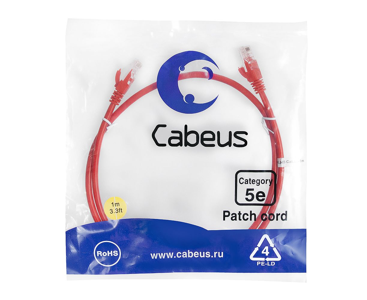 Патч-корд Cabeus PC-UTP-RJ45-Cat.5e-1m-RD неэкранированный, красный