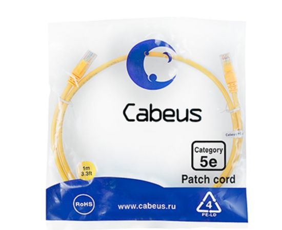 Патч-корд Cabeus PC-UTP-RJ45-Cat.5e-1m-YL-LSZH неэкранированный, желтый