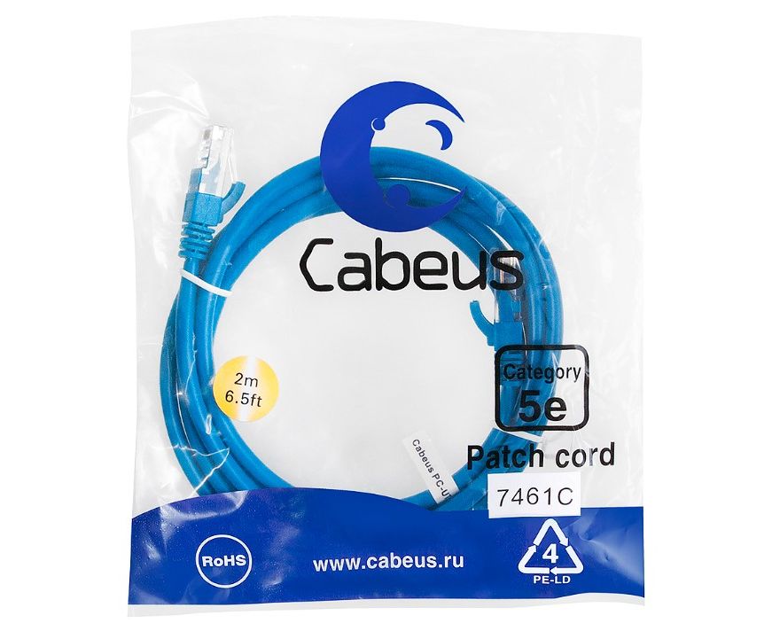 Патч-корд Cabeus PC-UTP-RJ45-Cat.5e-2m-BL неэкранированный, синий