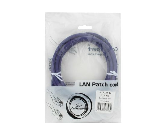 Патч-корд UTP Cablexpert PP12-2M/V кат.5e, 2м, литой, многожильный (фиолетовый)