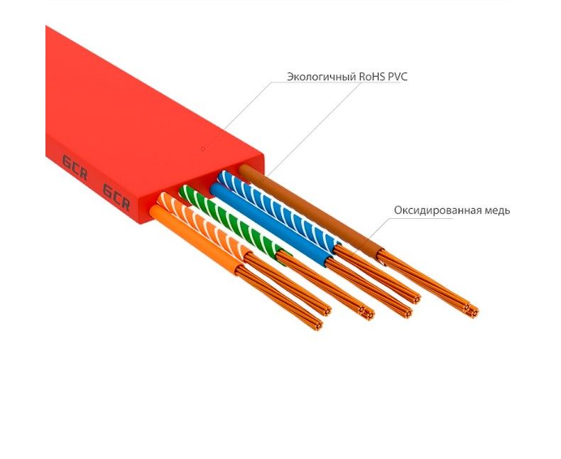 Патч-корд Greenconnect Prof GCR-52851 плоский прямой 10.0m, UTP медь RJ45, кат.6, красный