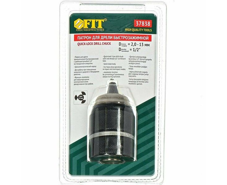 Патрон стальной для ударных дрелей, повышенная нагрузка FIT HQ 37838, 1/2"1.5 - 13 мм