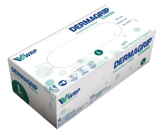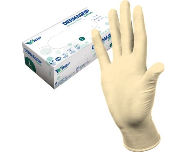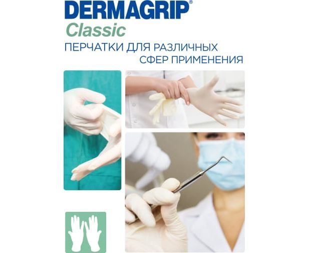 Смотровые латексные перчатки DERMAGRIP CLASSIC 100 штук, размер L CT0000000692 – высококачественные латексные неопудренные перчатки предназначены для процедур клинического-диагностического характера, в медицине и стоматологии.