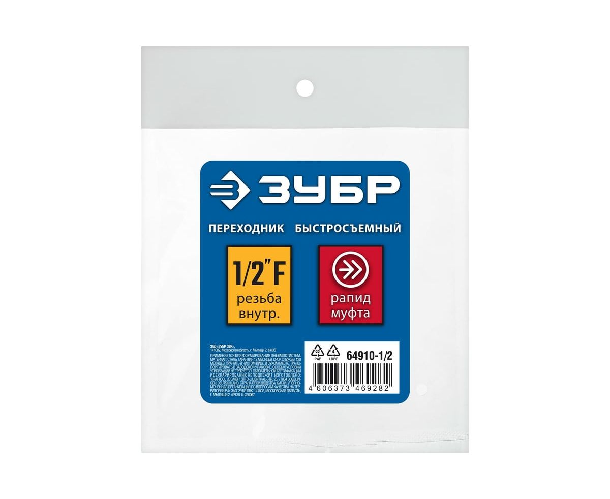 Переходник для пневмоинструмента Зубр 64910-1/2 серый