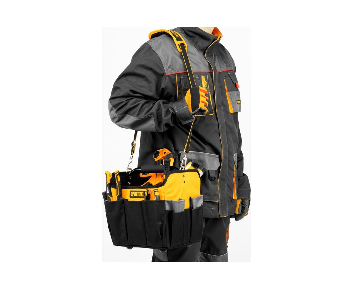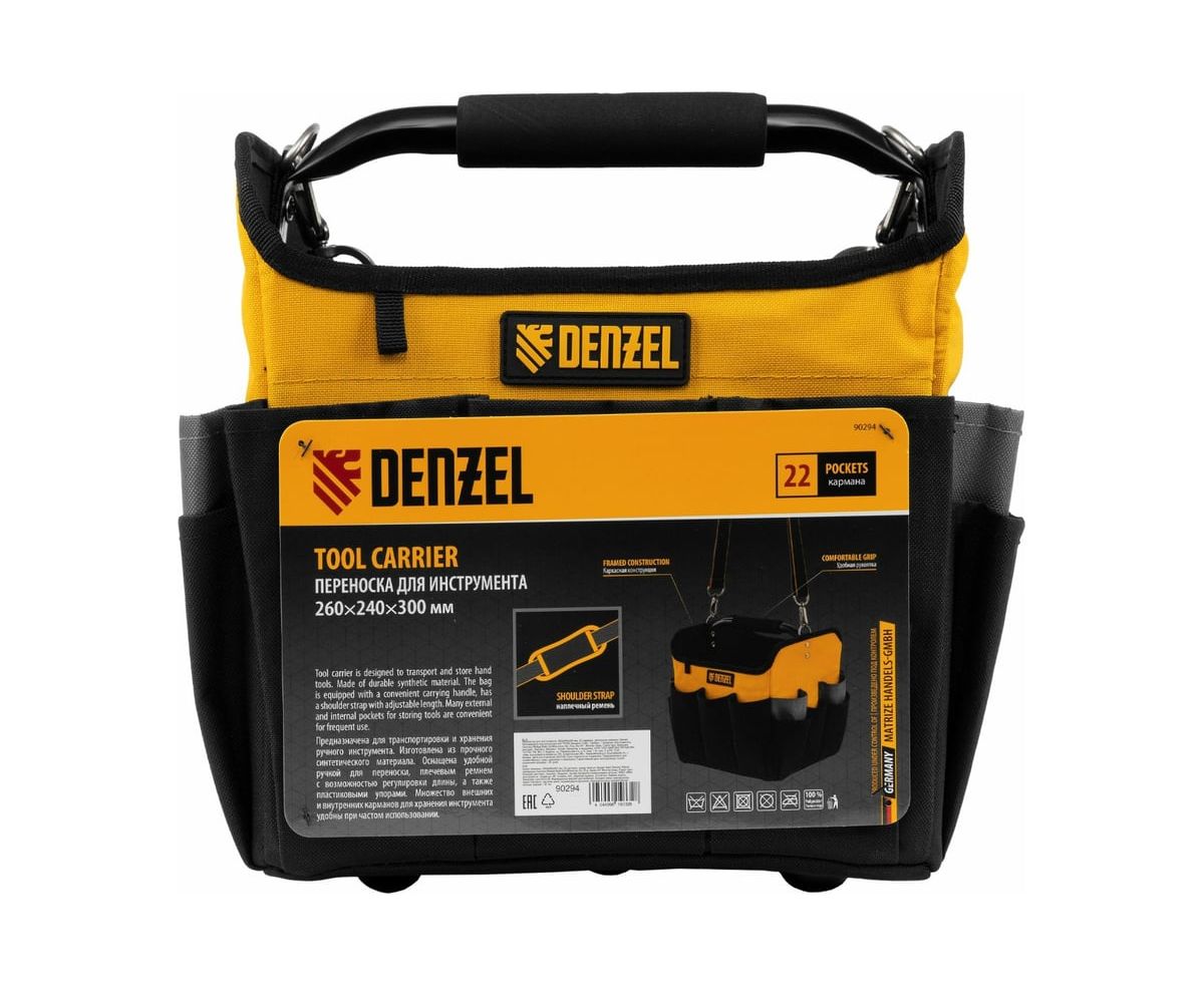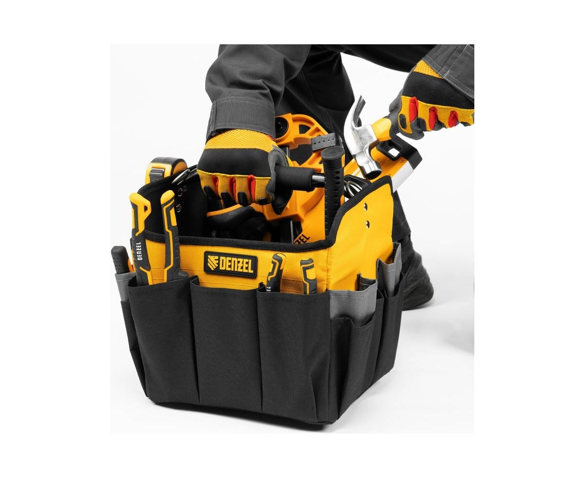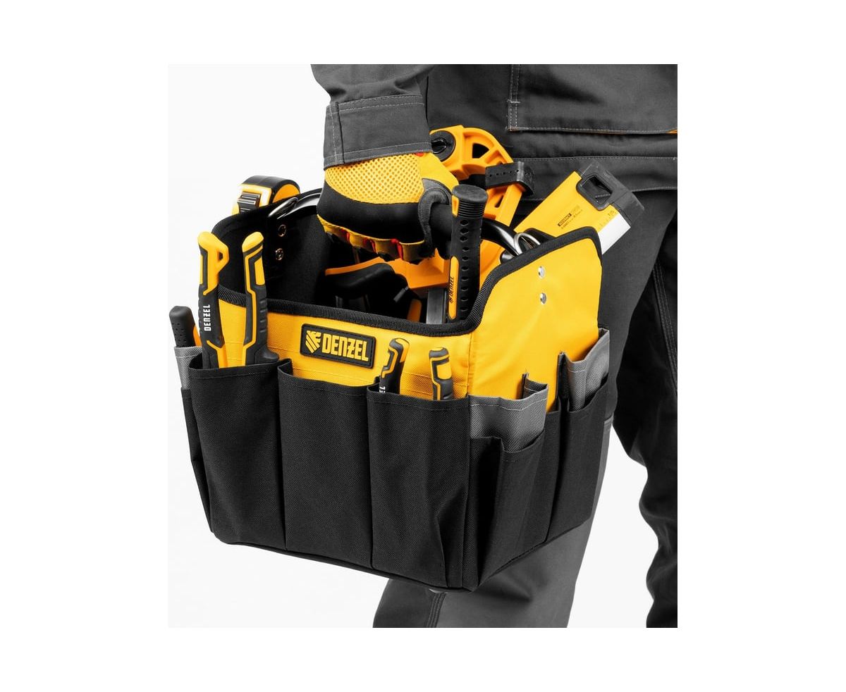 Переноска для инструментов Denzel 90294 260x240x300 мм, 22 кармана, наплечный ремень