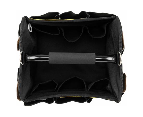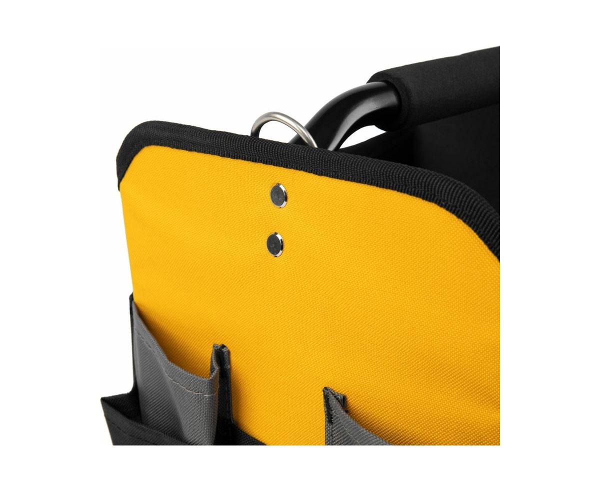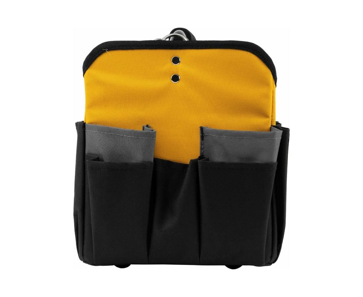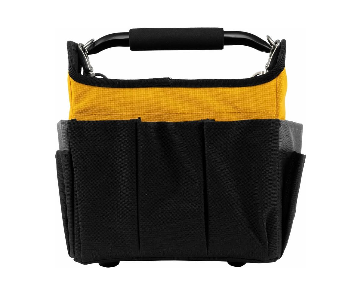 Переноска для инструмента Denzel 260x240x300 мм, 22 кармана, наплечный ремень 90294 предназначена для транспортировки и хранения ручного инструмента. Множество внешних и внутренних карманов удобны для быстрого доступа к нужному инструменту, а также позволяют оптимизировать пространство переноски. Переноска оснащена стальной рукояткой с неопреновой круглой накладкой, а также плечевым ремнем с возможностью регулировки длины (широкая подвижная накладка для удобства). Данная модель удобна, как при выездных работах, так и для хранения инструмента, например, дома, в машине, на даче или в гараже. Материал переноски - плотный полиэстер (600 D), устойчивый к истиранию. Конструкция сумки усилена боковым каркасом. На дне сумки с внешней стороны установлены пять пластиковых сферических подставок. В случае необходимости, стальные карабины на плечевом ремне позволяют быстро отсоединять его от переноски. Длина плечевого ремня 1350 мм.