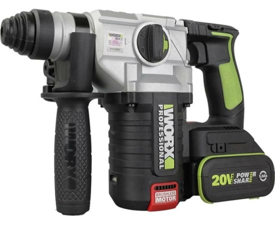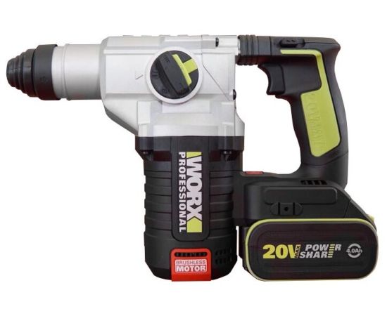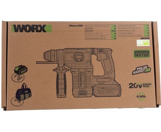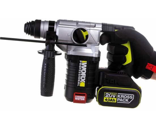 Перфоратор WORX Professional WU388 аккумуляторный, бесщеточный, 20В, 24мм, 2,2Дж, 4Ач х2 АКБ, ЗУ 2А, коробка