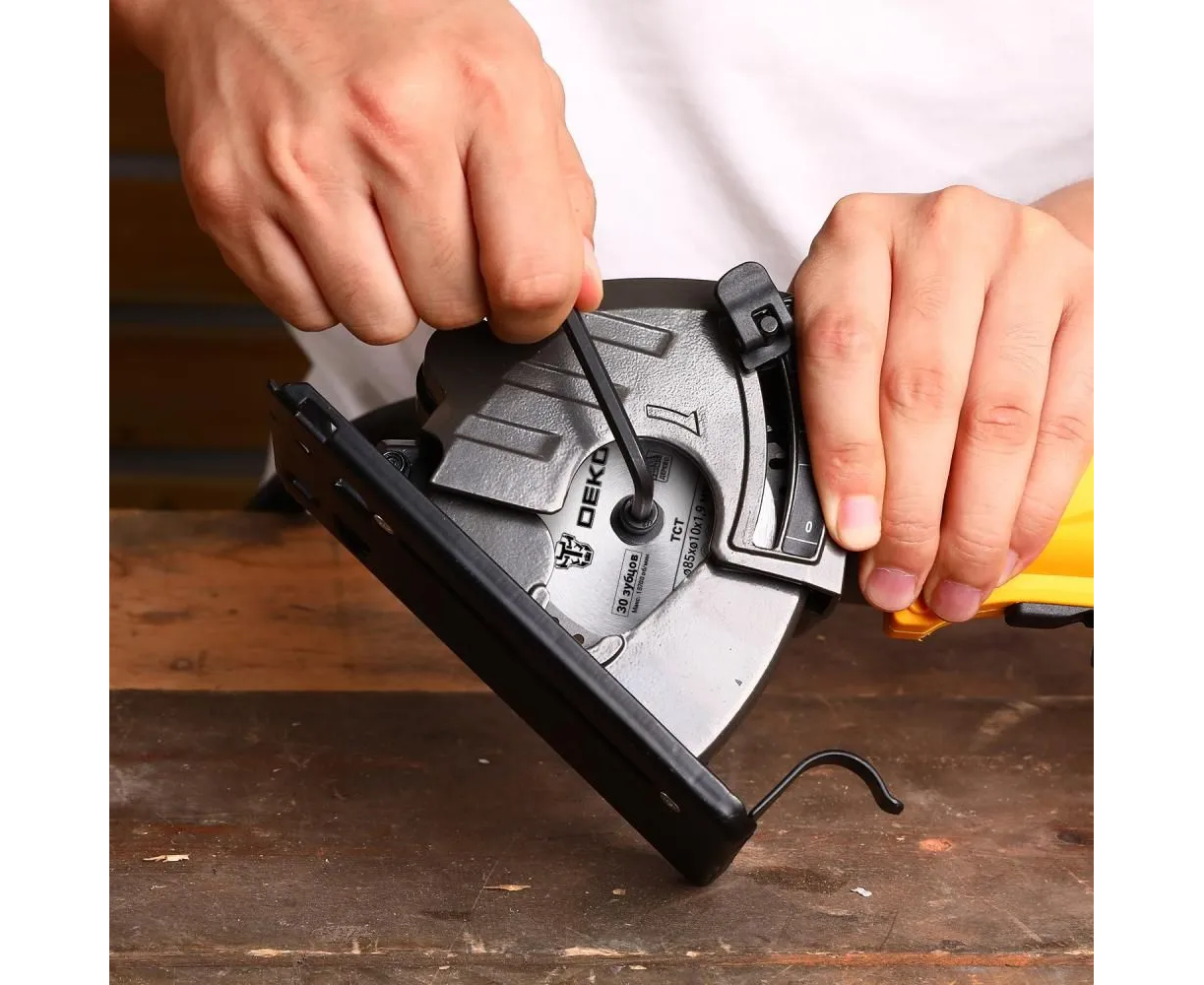 Дисковая (циркулярная) пила DEKO CS1050-D в кейсе предназначена для прямолинейного пиления листовых древесных материалов малой толщины – паркет, ламинат, плиты ДСП и пр.