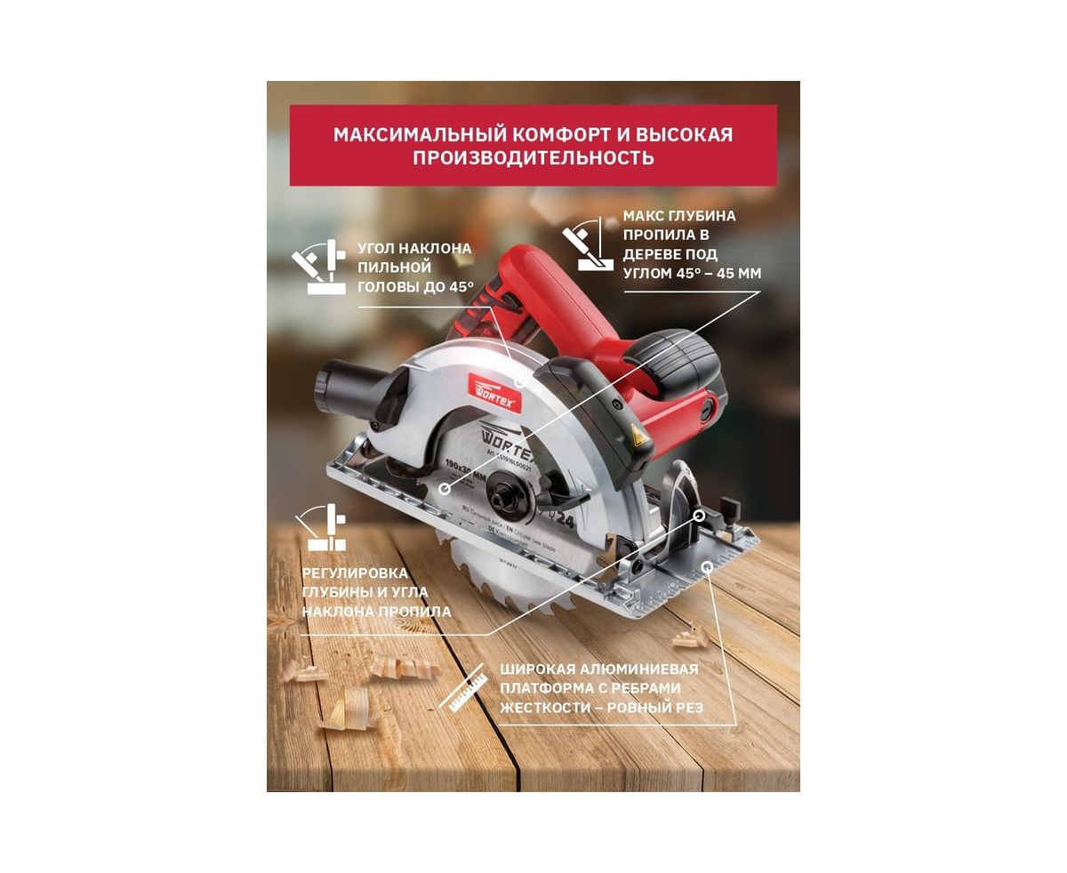 Циркулярная пила WORTEX CS 1916 L CS1916L00021 – это мощная, но при этом легкая и компактная пила подойдет для продольных и косых пропилов при максимальном уровне комфорта.