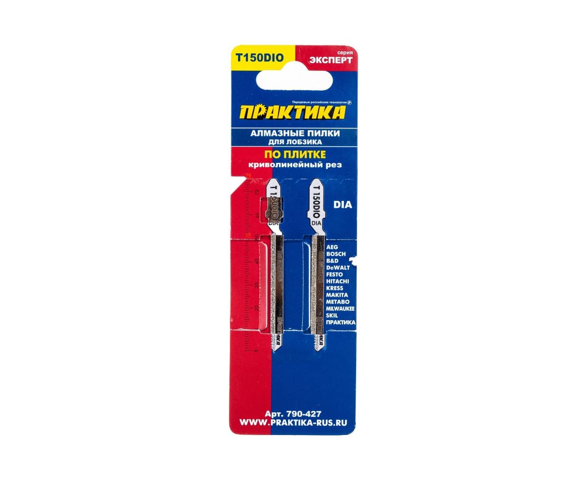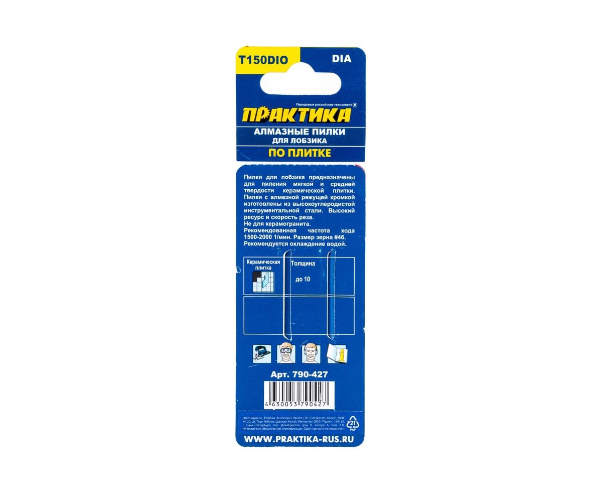 Пилки для лобзика ПРАКТИКА 790-427 по плитке тип T150DIO 76х50мм, криволинейный рез, Алмазные 2шт