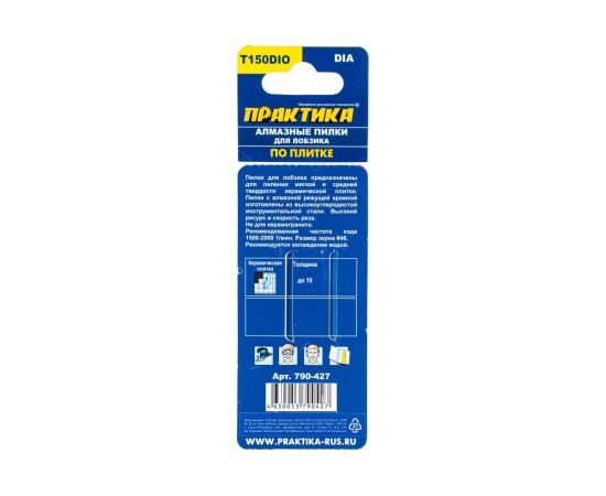 Технические характеристики алмазных пилок по плитке для лобзика ПРАКТИКА 790-427