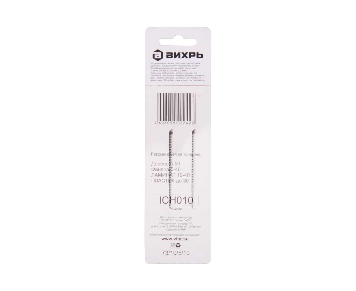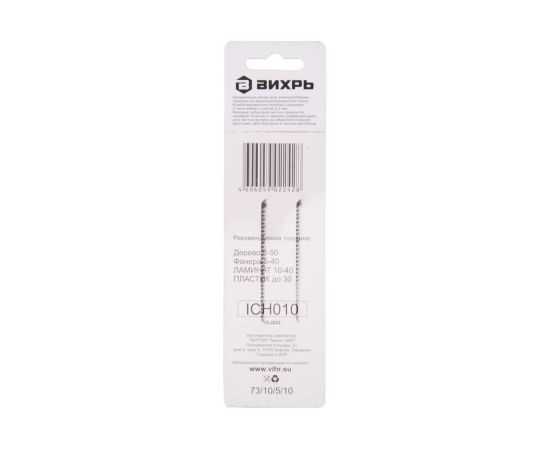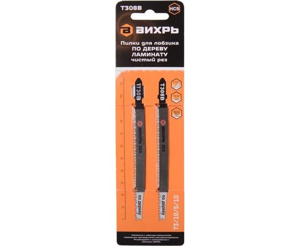 Пилки Вихрь Т308В 73/10/5/10 для лобзика по дереву, ламинату, чистый рез 116x90мм (2шт)