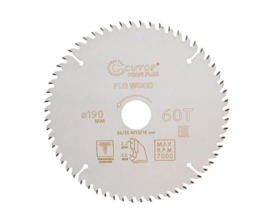 Пильный диск CUTOP 75-19060Т по дереву, 190мм, 1.5мм, 30мм