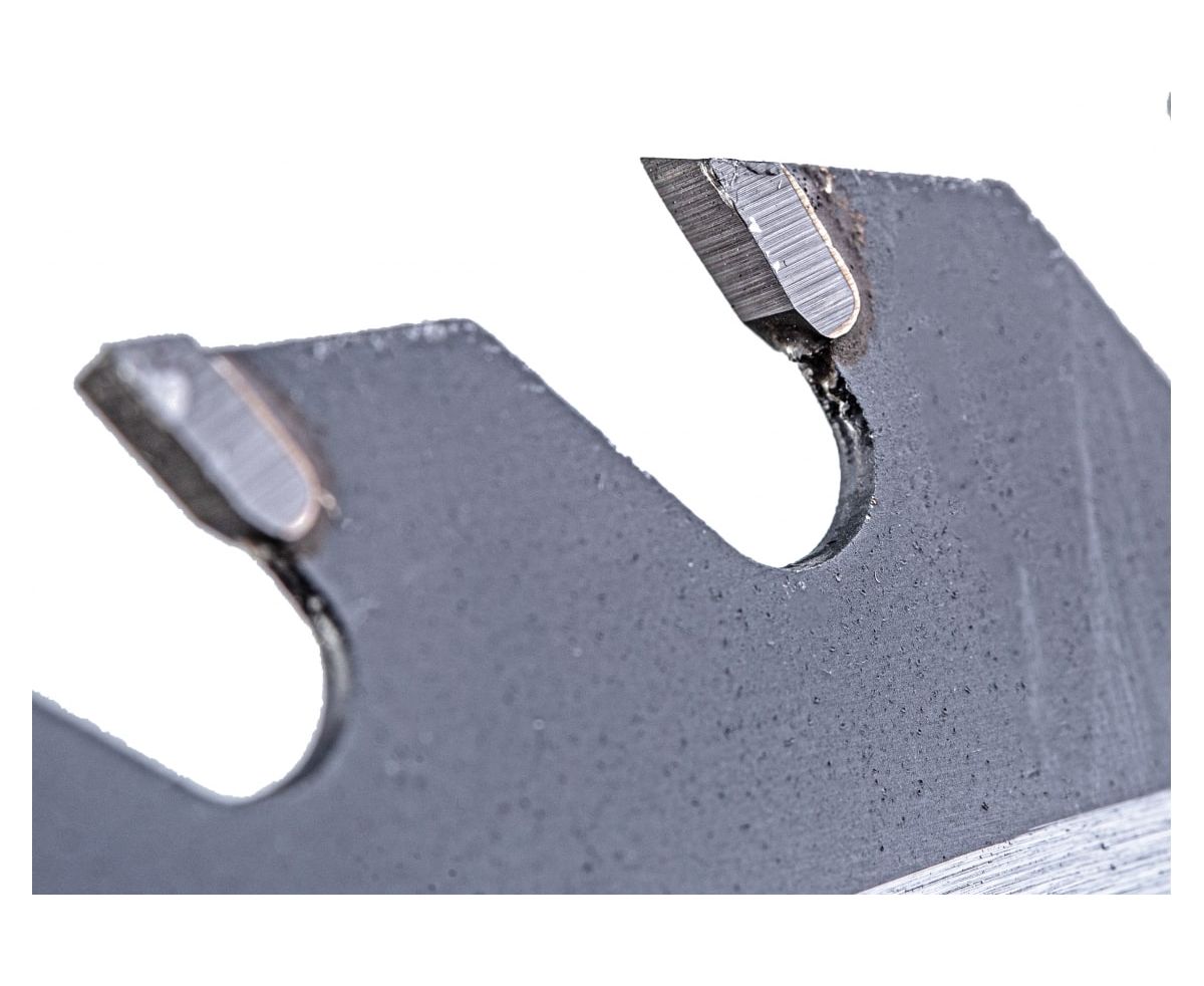 Зубья оснастки оснащены твердосплавными напайками с ровной геометрией и имеют специальную заточку для качественной распиловки заготовок.
