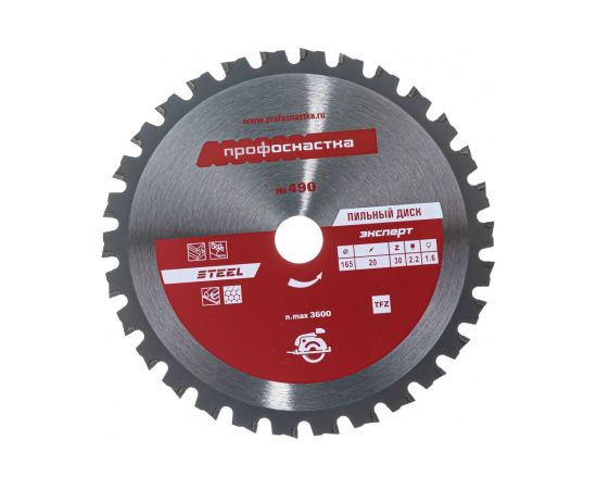 Пильный диск Профоснастка № 490 Эксперт 60401010 165xZ30x16/20 TFZ 0 Steel