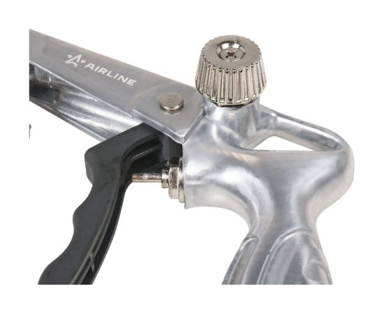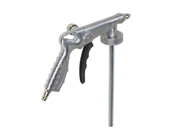 Пистолет изготовлен из металла. Имеет стандартное присоединение под евробаллон и гибкое сопло для нанесения составов в скрытых полостях и труднодоступных местах. Конструкцией пистолета предусмотрена регулировка расхода воздуха.